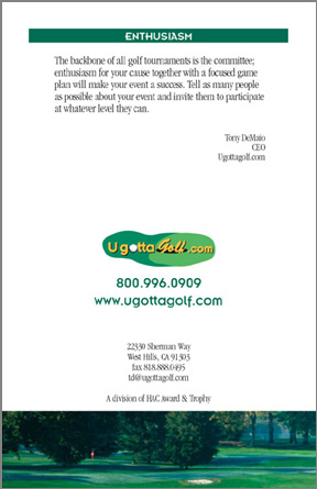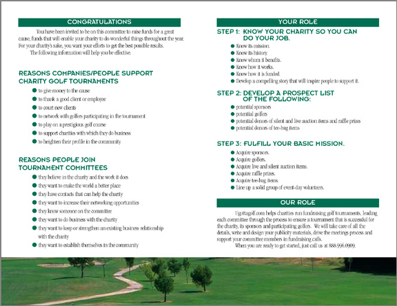 This brochure goes out to members of a charity's golf tournament committee to aquaint them